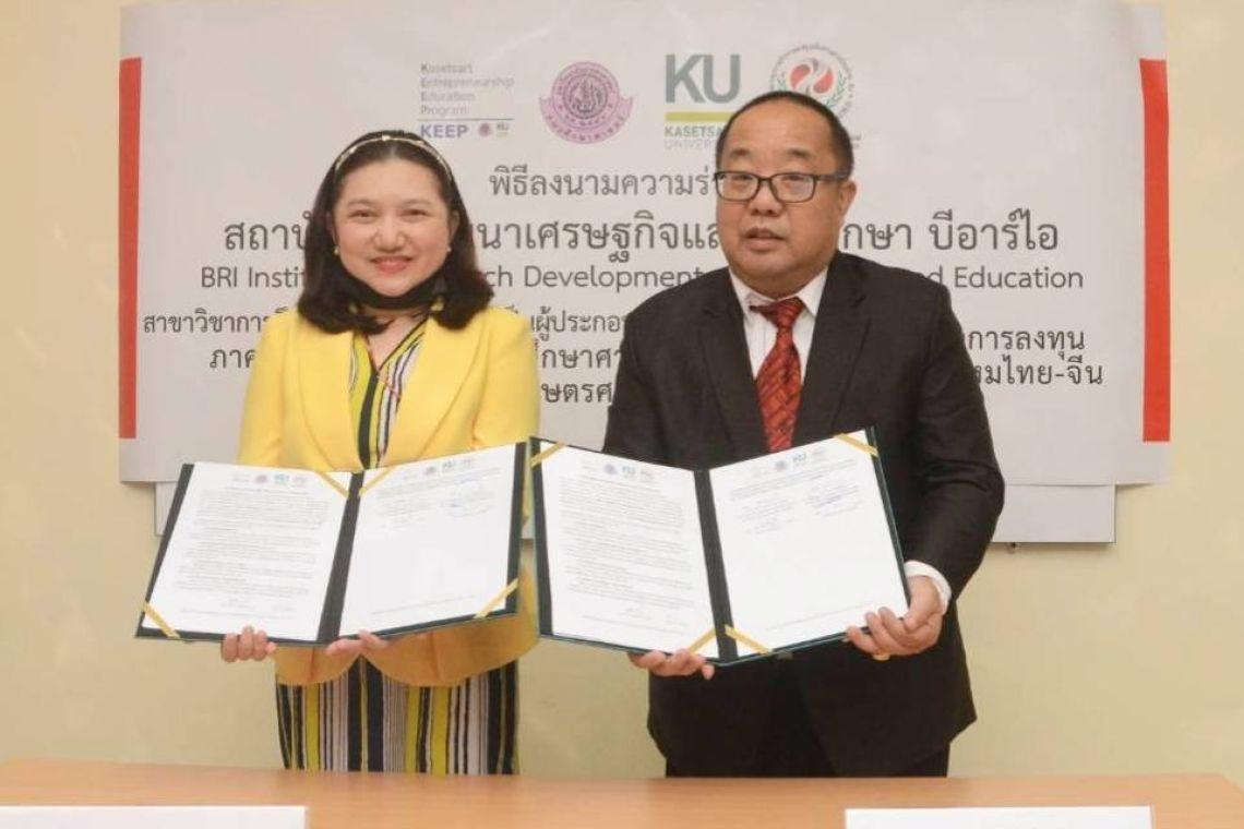 Dr.Tarakorn Wuttisatirakul, President of the Thai-China One Belt One Road Investment Trade Association and Chairman of BRI Institute of Research Development on Economic and Education (BRIIRD) and Associate Professor Methinee Wongwanich Rumpagaporn, Chairman of Kasetsart Entreprenuership Education Program (KEEP), Faculty of Education, Kasetsart University.